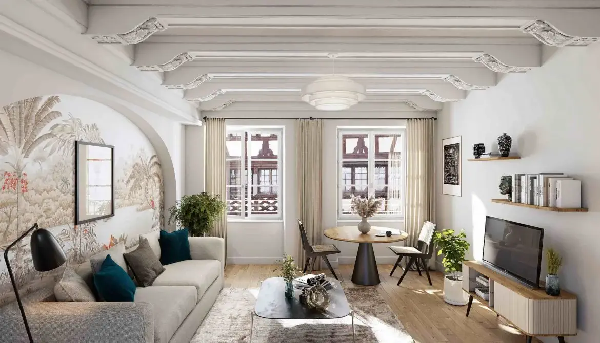 La restauration de ce bâtiment noble donnera naissance à 18 appartements, du studio au 3 pièces. Traversants pour la plupart, les logements offriront de superbes vues dégagées sur les joyaux architecturaux environnants : la Cathédrale, la Maison Kammerzell, la place Gutenberg.